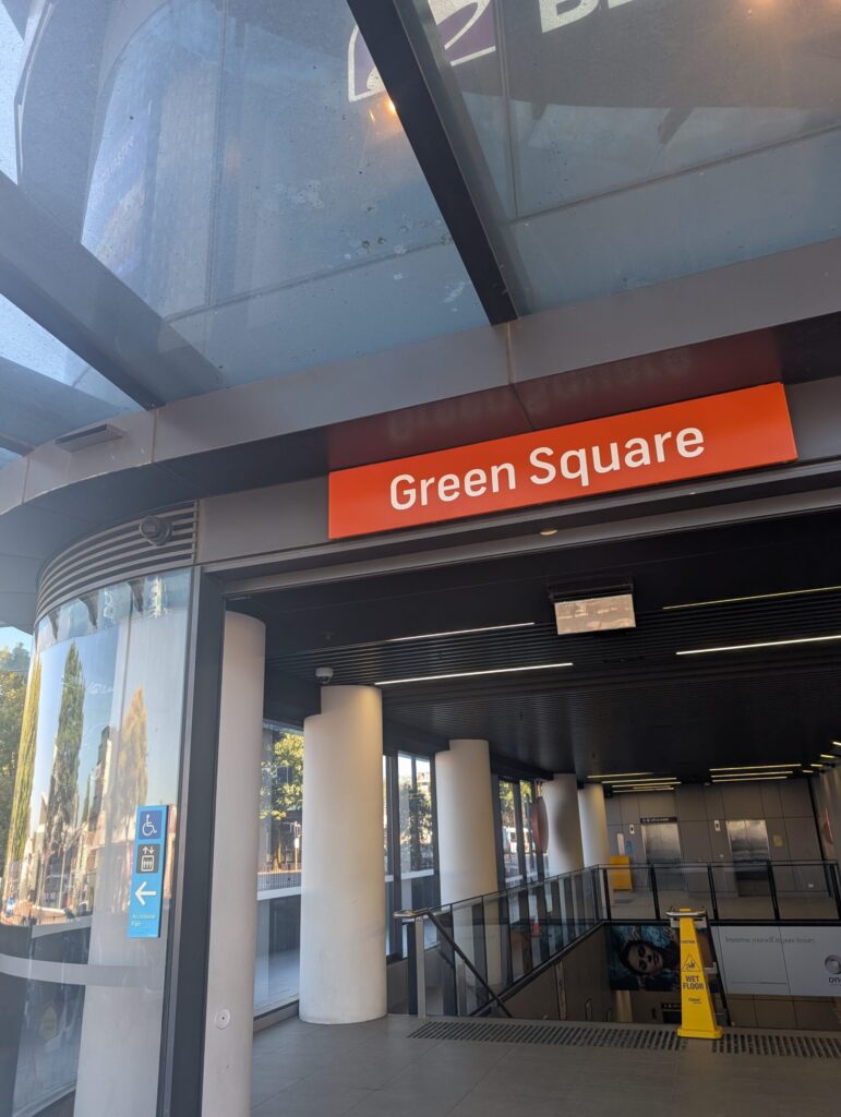 Green Square駅から徒歩数分、市内Central駅までは電車で5分前後、中心地のTown Hall駅まで電車で約10分~15分前ほどと好条件のロケーションにあります。